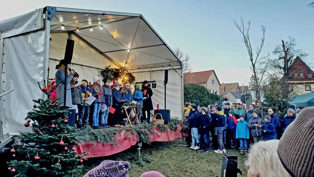 Ganz lebendig wurde der Weihnachtsmarkt von den jüngsten Einwohnern eröffnet, unterstützt von den Chorkindern der Grundschule des Ortes. Was für eine schöne Idee!